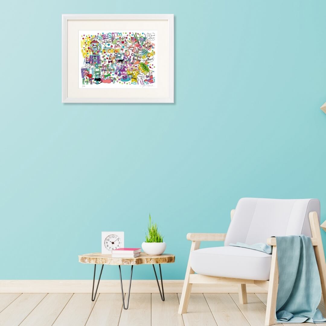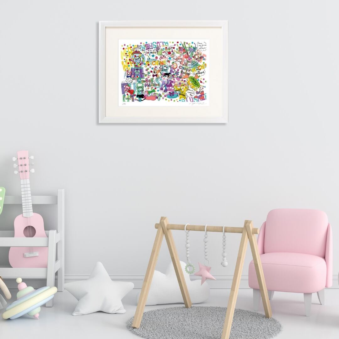この作品は、インテリアアートとして空間にポップなリズムと明るさをもたらします。白を基調とした部屋に飾れば、まるでアートギャラリーのような雰囲気に。カジュアルでありながら洗練されたデザインは、リビングやワークスペース、子ども部屋にもぴったりです。見るたびに元気をくれるような配色と構成は、インテリアの中で日常のスパイスとなり、空間を軽やかに彩ります。アートを通じて、少し大胆に、少し楽しく。そんな気分を味わえる、ポップでおしゃれなインテリアアートです。