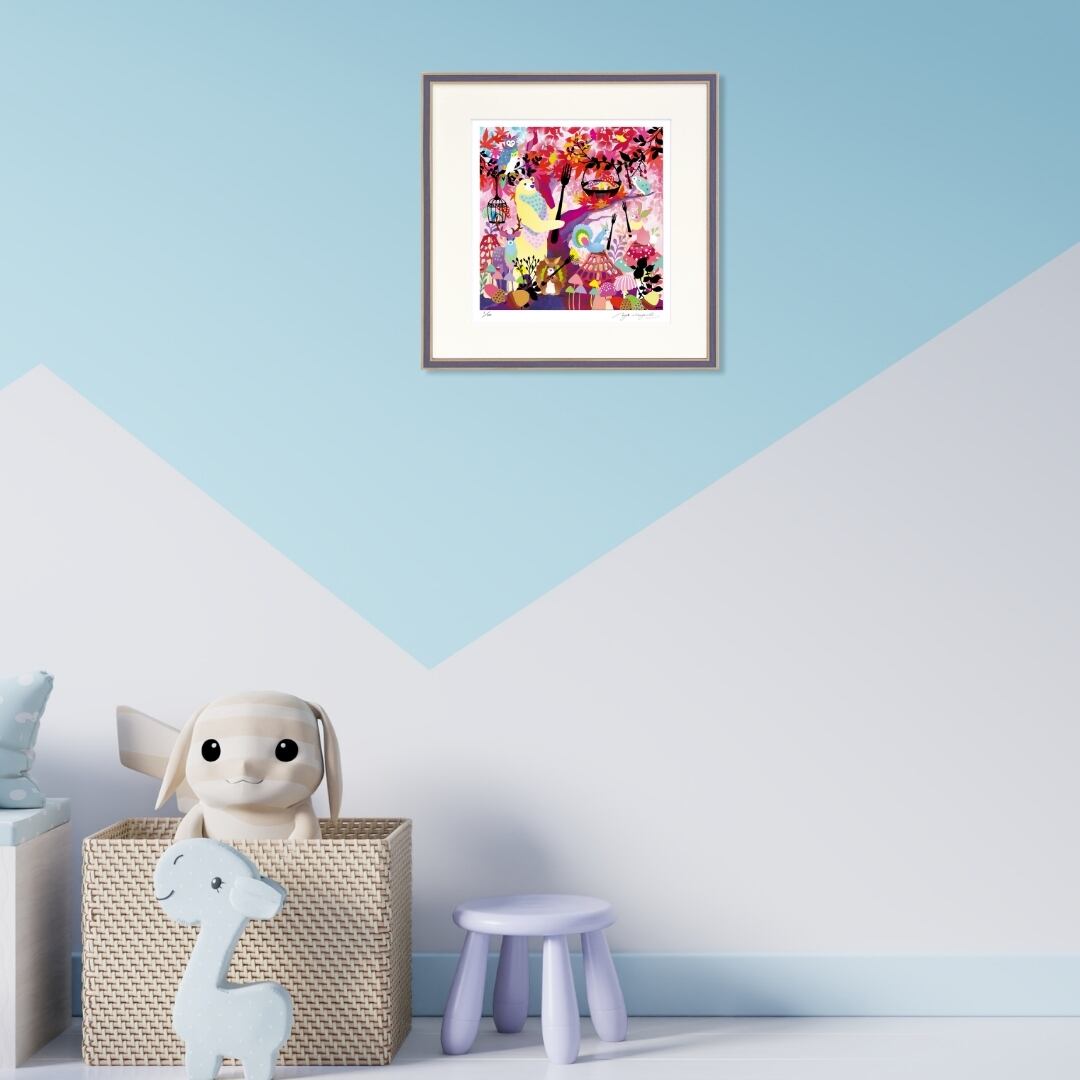 この作品は、インテリアアートとしてお部屋に深みとやさしさを与えます。秋の彩りを思わせる赤やオレンジのトーンは、木製家具やナチュラルな空間に心地よく調和し、見るたびに安らぎを感じさせます。リビングや寝室、玄関に飾れば、自然のぬくもりがそっと寄り添うように空間を包み込みます。季節の移ろいをインテリアに取り入れたい方にもおすすめで、一年を通して穏やかな雰囲気を演出できるのが魅力です。優しい色彩と物語性が共存するこのアートは、日常に小さな詩を届けてくれるような存在です。