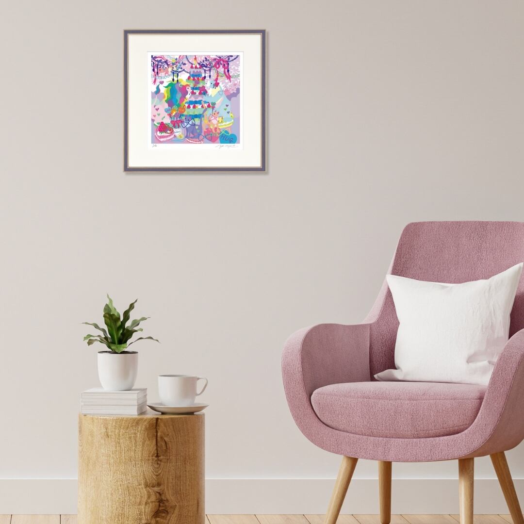 この作品は、お部屋に幸福感と穏やかな彩りを添えてくれます。柔らかなパステルカラーが空間を明るく包み込み、リビングや寝室、子ども部屋などにもぴったり。見るたびに心が温かくなり、日々の中でちょっとした幸せを感じさせてくれるアートです。やさしい色合いと丸みのあるフォルムが、インテリアに柔らかい印象を与え、自然と笑顔がこぼれるような空間にしてくれます。眺めるほどに“自分への小さなご褒美”のような気持ちになれる、心に甘い余韻を残す一枚です。