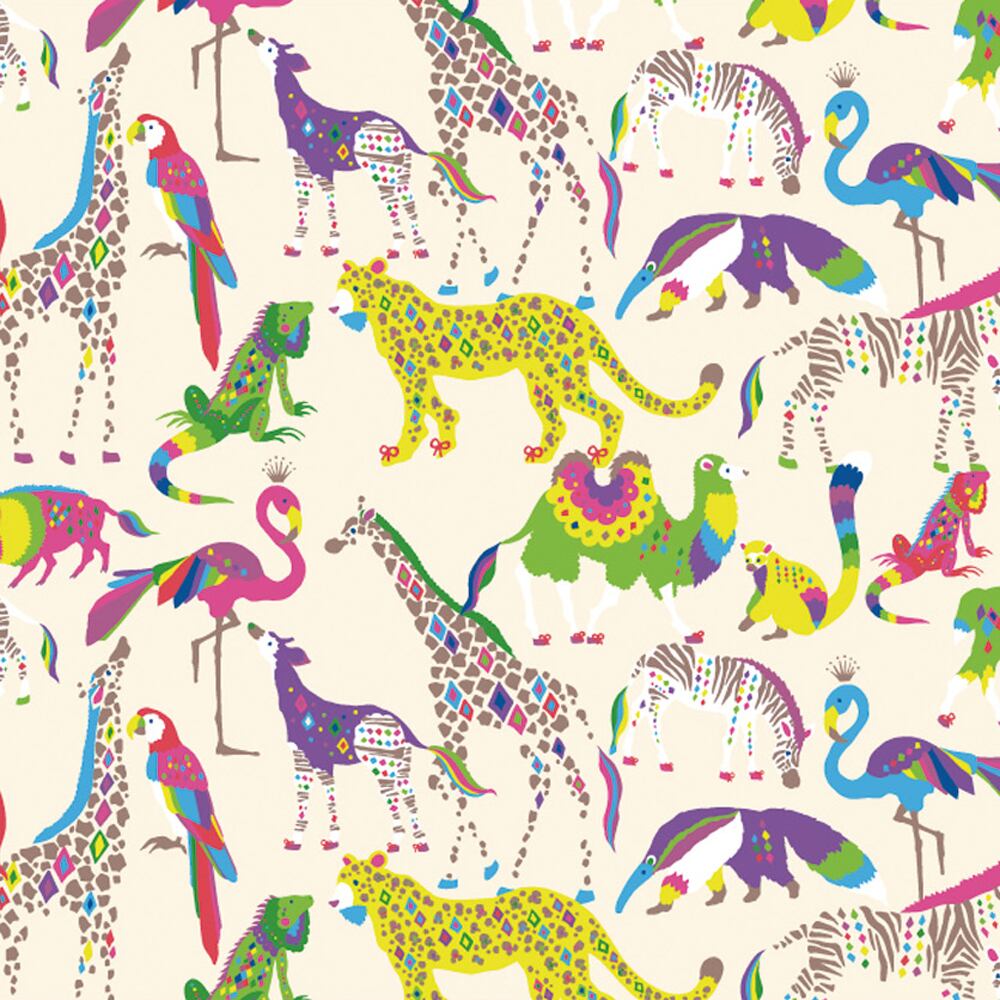 「Diamond shaped_beige」は、ベージュのやわらかな背景に、カラフルな動物たちがリズミカルに並ぶ、優美で心躍る作品です。シマウマやキリン、ライオン、クジャク、サイなど多彩な動物たちが、それぞれダイヤ柄の模様をまとい、まるでファッションショーを楽しむように登場します。鮮やかなピンクやブルー、グリーン、パープルの色彩が織りなすハーモニーは、見ているだけで心を明るくしてくれます。規則性のある構図の中にも、表情や姿勢の違いが巧みに描かれており、生命の多様性と美しさを軽やかに表現した一枚です。アート全体に漂う品の良さとユーモアが、空間を一瞬で楽しくしてくれます。