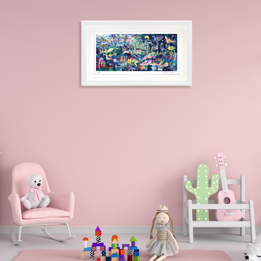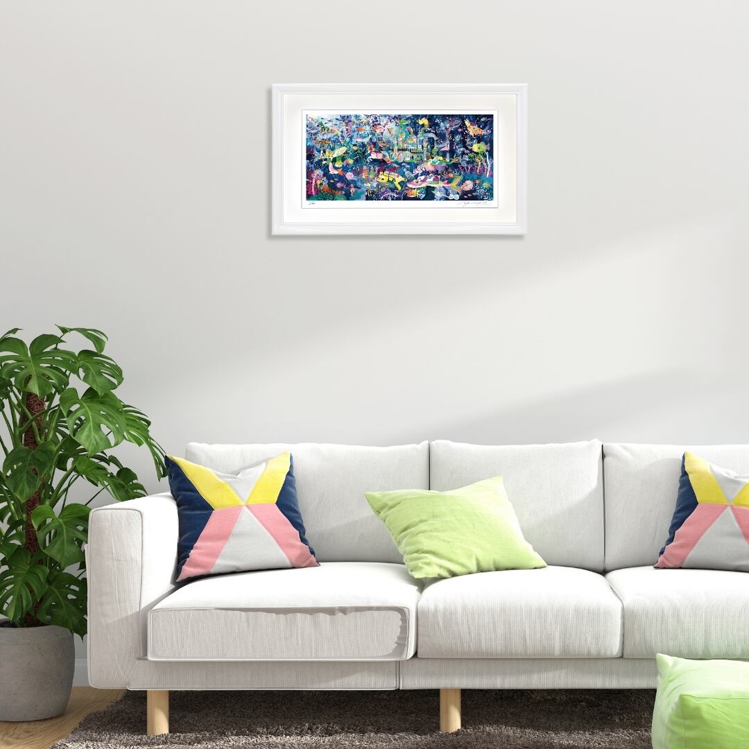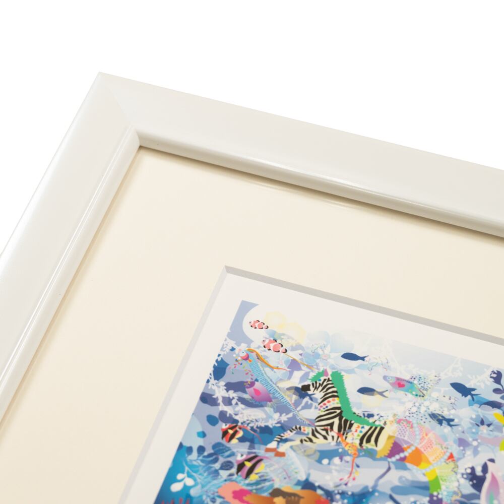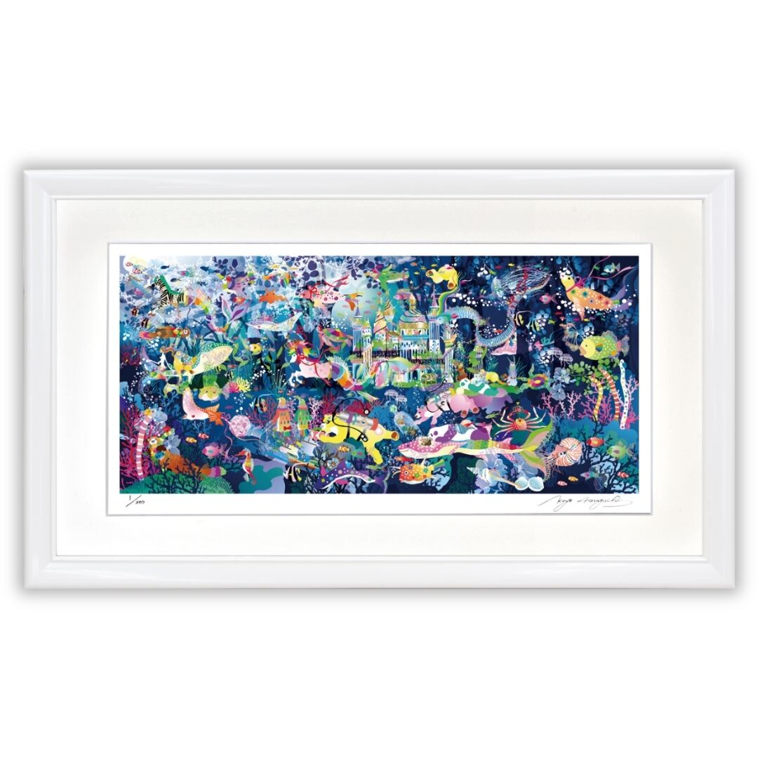 深海のブルーが空間に静けさと深みを与え、見る人の心を穏やかに落ち着かせます。白いフレームが作品の鮮やかさを引き立て、モダンなインテリアにも、ナチュラルテイストにも自然に溶け込むデザインです。昼は爽やかに、夜は柔らかな灯りの中で幻想的な輝きを放ち、時間とともに表情を変えるアートとして長く楽しめます。リビングや寝室、書斎などに飾れば、静けさの中に物語が息づくような空間に。海のように包み込む優しさと、宝探しのようなワクワク感が共存する一枚です。